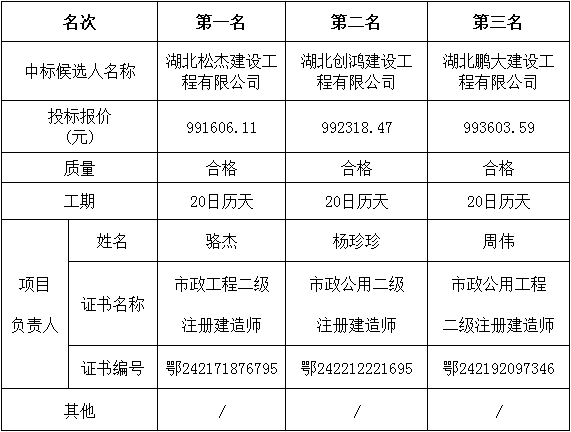 金松集團(tuán)創(chuàng)衛(wèi)環(huán)境整治項(xiàng)目(行政服務(wù)中心地塊場地平整)于2022年11月8日在湖北松滋金松投資控股集團(tuán)有限公司開標(biāo)室開標(biāo),并于2022年11月8日完成評標(biāo)工作。根據(jù)評標(biāo)委員會提交的評標(biāo)報(bào)告,湖北松滋金松投資控股集團(tuán)有限公司已經(jīng)確認(rèn)評標(biāo)結(jié)果,現(xiàn)進(jìn)行評標(biāo)結(jié)果公示。