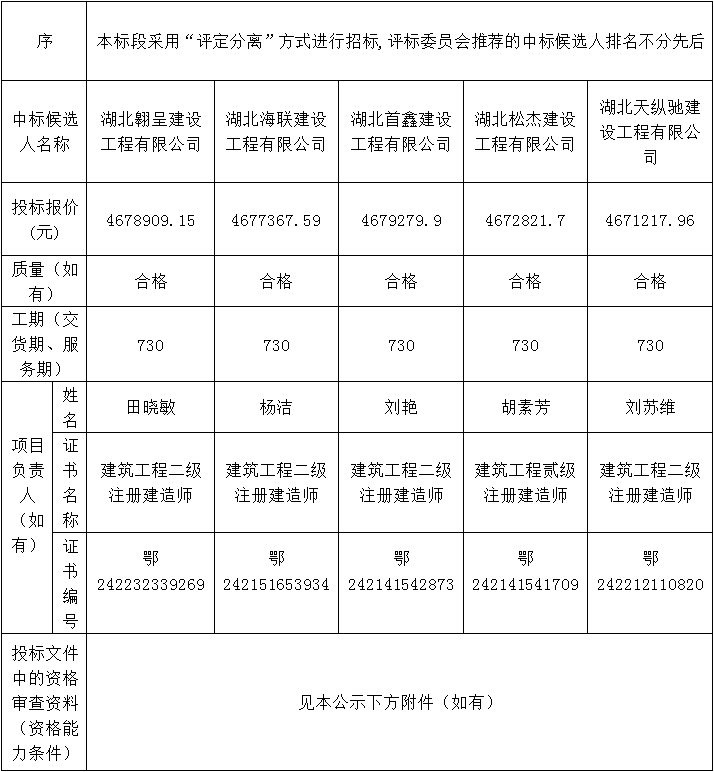 松滋市保障性租賃住房項目(一期)劃子嘴幸福家園及泰和花園三期只租不售房源裝修工程于2024年02月02日在湖北省電子招投標(biāo)交易平臺發(fā)布招標(biāo)公告,2024年03月01日在松滋市開標(biāo)室(2)開標(biāo),并于2024年03月01日完成評標(biāo)工作。根據(jù)評標(biāo)委員會提交的評標(biāo)報告,松滋市金投保障房運營房屋租賃有限公司已經(jīng)確認(rèn)評標(biāo)結(jié)果,現(xiàn)進(jìn)行評標(biāo)結(jié)果公示。