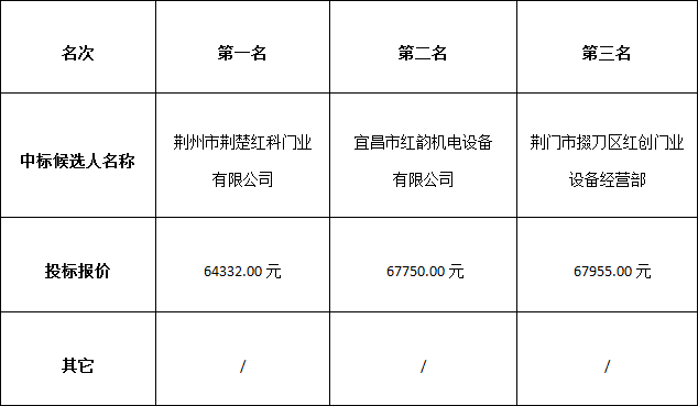 稻谷溪城市濕地公園配套設(shè)施設(shè)備(大門電動(dòng)伸縮門)采購項(xiàng)目于2018年11月28日發(fā)布詢價(jià)邀請(qǐng)函,2018年12月5日在松滋市稻谷溪城市濕地公園會(huì)議室進(jìn)行評(píng)標(biāo)。根據(jù)評(píng)標(biāo)小組提交的評(píng)標(biāo)結(jié)論,湖北金投物業(yè)管理有限公司已經(jīng)確認(rèn)評(píng)標(biāo)結(jié)果,現(xiàn)進(jìn)行中標(biāo)候選人公示。
