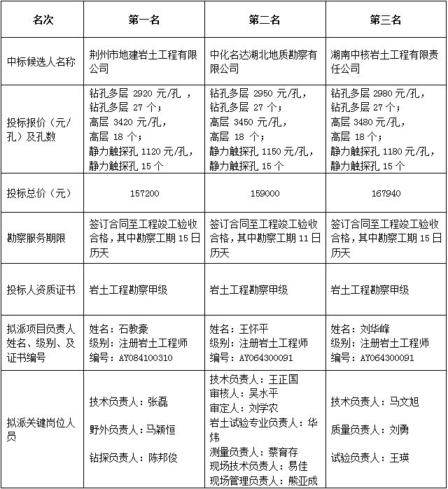 松滋市人才公寓建設項目勘察于2018年12月29日在松滋金投商業(yè)開發(fā)有限公司發(fā)布投標邀請書,2019年1月5日在松滋市金松集團開評標室開標。根據(jù)評標委員會提交的報告,松滋金投商業(yè)開發(fā)有限公司已經(jīng)確認開標結(jié)果,現(xiàn)進行中標候選人公示。