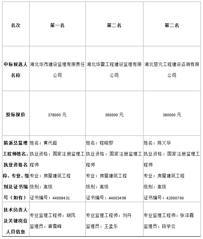 松滋市服裝產(chǎn)業(yè)園(B區(qū))職工宿舍建設(shè)項目監(jiān)理于2019年11月27日向被邀請單位發(fā)出投標(biāo)邀請,2019年12月03日在金松集團(tuán)開評標(biāo)室開標(biāo)。根據(jù)評標(biāo)小組提交的評標(biāo)報告,松滋金松工業(yè)投資開發(fā)有限公司已經(jīng)確認(rèn)評標(biāo)結(jié)果,現(xiàn)進(jìn)行中標(biāo)候選人公示。