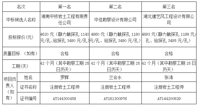 松滋市金投•新城印象建設(shè)項(xiàng)目勘察于2020年4月26日發(fā)出招標(biāo)邀請(qǐng),2020年5月7日在湖北松滋金松投資控股集團(tuán)有限公司開評(píng)標(biāo)室開標(biāo),并于2020年5月7日完成評(píng)標(biāo)工作。根據(jù)評(píng)標(biāo)委員會(huì)提交的評(píng)標(biāo)報(bào)告,湖北松滋金投置業(yè)有限公司已經(jīng)確認(rèn)評(píng)標(biāo)結(jié)果,現(xiàn)進(jìn)行評(píng)標(biāo)結(jié)果公示。