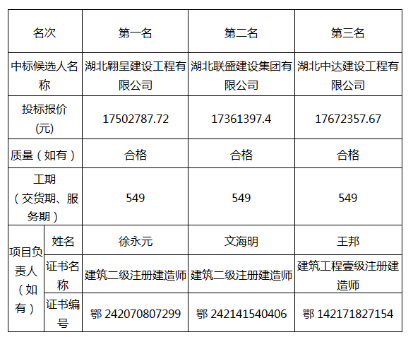 金投•北辰佳苑安置小區(qū)建設(shè)項目于2020年06月19日在湖北省電子招投標(biāo)交易平臺發(fā)出招標(biāo)公告,2020年07月13日在松滋市開標(biāo)室(1)開標(biāo),并于2020年07月13日完成評標(biāo)工作。根據(jù)評標(biāo)委員會提交的評標(biāo)報告,湖北松滋金投置業(yè)有限公司已經(jīng)確認(rèn)評標(biāo)結(jié)果,現(xiàn)進(jìn)行評標(biāo)結(jié)果公示。